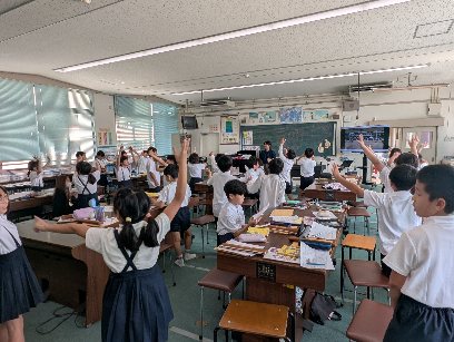 音楽の授業の様子です。運動会の応援歌の練習をしていました。本番を見据えて、元気いっぱい歌っていました。本番も今のように元気に歌いましょう。