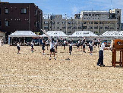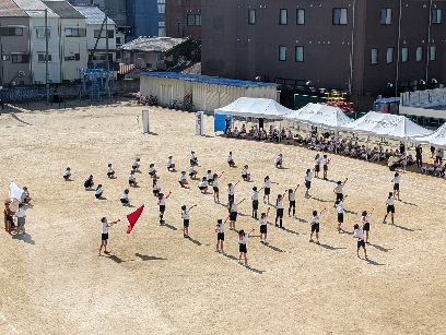 運動会全体練習で、応援合戦の練習をしました。その様子をお届けします。