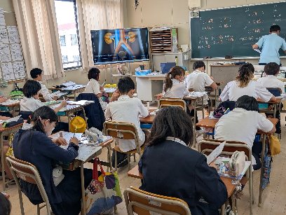 理科の授業の様子です。ヒトの体の学習のワークシートの、答え合わせをしていました。この学習を経て、医学の道を志す人が出てきてほしいものです。