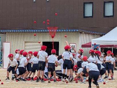 1・2年生定番の団体競技、 玉入れです。みんながんばりました。ダンスも可愛かったですね。