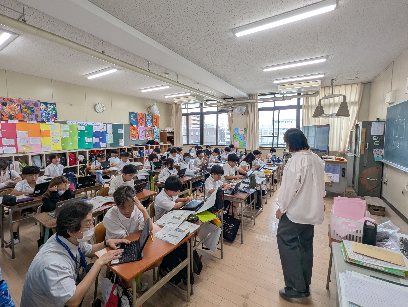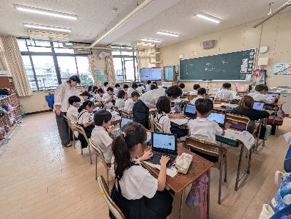 国語の授業の様子です。ICT機器を使って、生き物図鑑を作っていました。この学習には、機器の活用能力や調べる力、文章を組み立てる力や書く力、それを発表する力等、たくさんの身につけるべき内容があります。これらは、学校だけでなく社会でも求められている力です。今からしっかり身につけていきましょう。