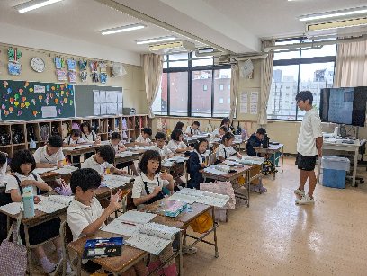 算数の授業の様子です。繰り下がりのあるひき算の学習をしていました。ひっ算を使い、計算していました。今はしっかり計算の仕方を覚えましょう。