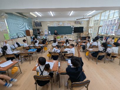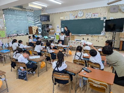 国語の授業の様子です。みんなにはなそうの学習をしていました。身の回りで見つけたものを、クイズ形式にしてみんなの前で話していました。子ども達は、クイズの答えを手を挙げて発表していました。発表者も解答者もすごく楽しそうに発表会をしていました。