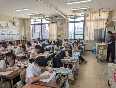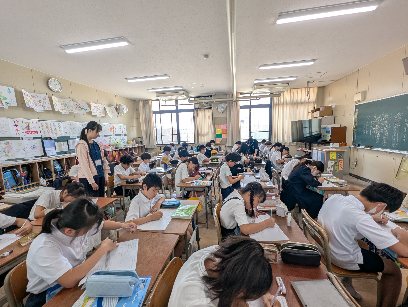 算数の授業の様子です。小数のかけ算の学習をしていました。練習問題を解いていました。みんな集中して取り組んでいたので、テストを受けているのかと思ってしまいました。これからもその集中力で、何事にもチャレンジしてください。