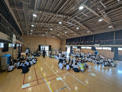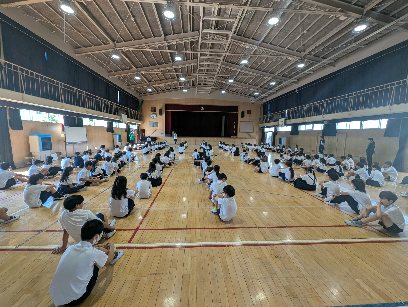 講堂で児童集会を行いました。今日は、中道夏まつりに向けての話し合いでした。なかよし班全員で、どんな出し物をしたいかを決めました。