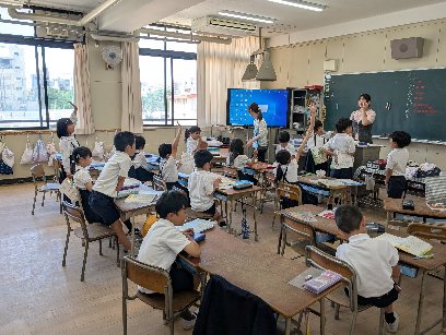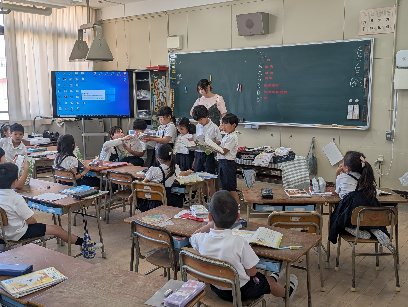 国語の授業の様子です。音読の学習をしていました。前に立って登場人物になって読んでいました。みんな登場人物になりきって上手に読んでいました。友達の発表を聞いている子ども達は、挙手して高い評価を述べていました。
