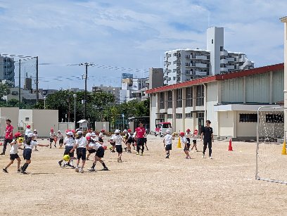 3時間目に、3・4年生がサッカーのトップアスリート夢授業を受けました。セレッソ大阪のコーチの指導を受けるたびに、歓声が上がりました。とても楽しかったんだと思います。最後に試合をしました。3年生の試合の様子です。