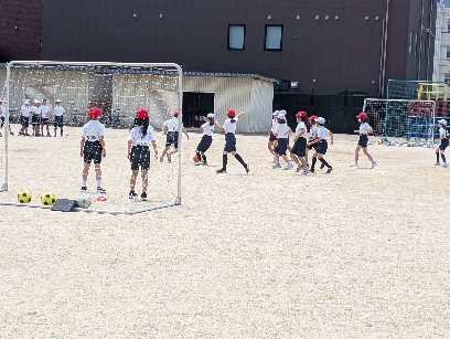 それぞれ試合をして、力一杯動き回りました。4年生の試合の様子です。