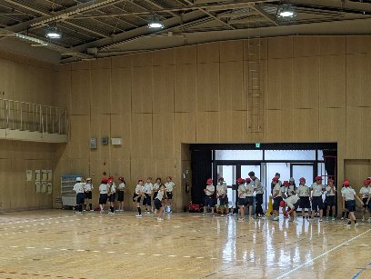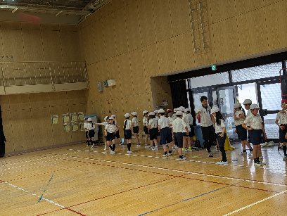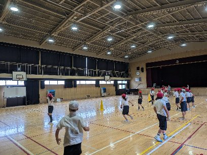 講堂で体育の授業研究会を行いました。投げる運動の学習でした。子ども達は、球を舞台や2階通路に向かって投げていました。いい汗をかいていました。
