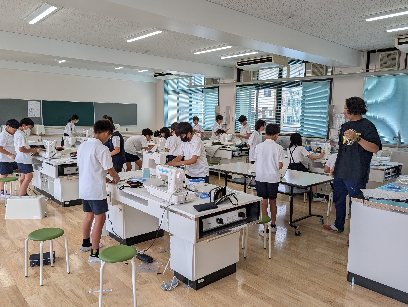 家庭科の授業の様子です。家庭科室で、ミシン縫いをしていました。作っているのは、ナップザックです。ミシンを使っていましたが、ていねいにていねいに縫っていました。完成が待ち遠しいですよね。日常で使うので、丈夫に縫っていきましょう。