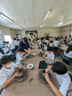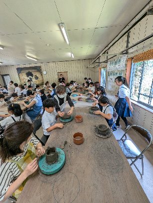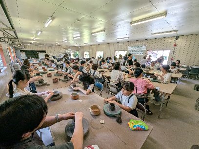 作陶の様子です。みんな楽しそうに作品を作っています。