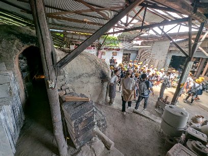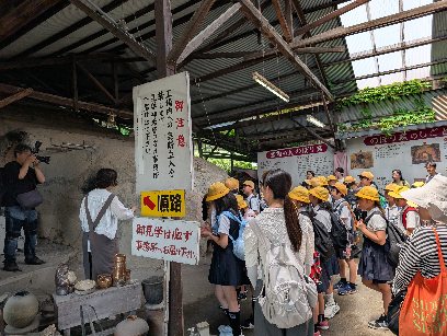 登り窯の見学をしています。