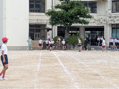 今日は、全校でスポーツテスト、ソフトボール投げの記録をとります。日ごろドッジボールなどで鍛えた、ボール投げの力を披露してください。
