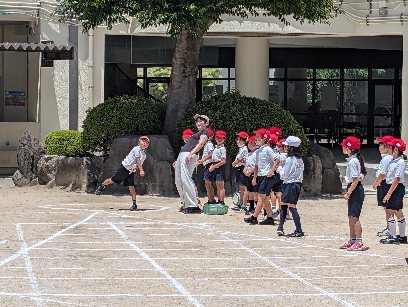 2年2組の測定の様子です。昨年よりも距離を伸ばした子が、多くいました。でももっと記録を伸ばすためには、投げる経験が必要です。休み時間などにも投げる運動にチャレンジしましょう。必ず距離は伸びます。