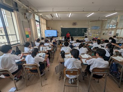 国語の授業の様子です。物語文「世界でいちばんやかましい音」の学習をしていました。場面分けをして、場面の内容をまとめていました。子ども達は、積極的に自分の意見を発表し、みんなでまとめていました。とても楽しそうに授業が進んでいました。