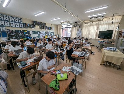 社会科の授業の様子です。タブレット端末も使って、平城京について調べていました。住んでいた人たちの暮らしや人口など、調べたことを積極的に発表していました。興味を持って学習に臨んでいました。とても大切なことです。