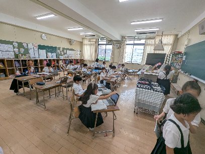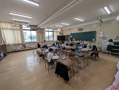 国語の授業の様子です。タブレット端末を使って調べ学習をしていました。ICT機器は、使えば使うほどスキルが上達します。日々之精進でがんばってください。