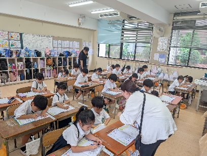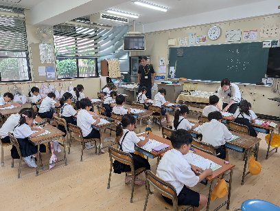 国語の授業の様子です。ひらがなの練習をしていました。「1字ずつていねいに書きましょう。」との、指示がありました。とても重要ですね。毎日、ていねいに書くことを心掛けてください。