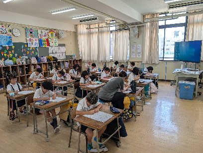 国語の授業の様子です。漢字テストをしていました。学期末です。1学期に習った漢字をしっかり覚えておきましょう。夏休みにも復習をして、使いこなせようにしましょう。