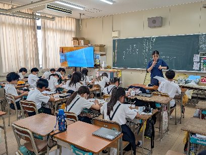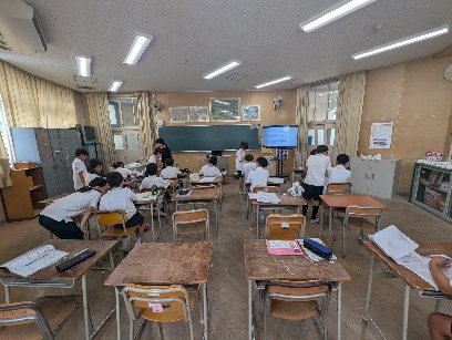 算数の授業の様子です。習熟度別少人数で学習をしていました。小数のわり算の復習プリントをしていました。1学期のまとめの時期ですね。わり算は、繰り返し練習することが大切です。普段の生活で小数のわり算を使うことがないからです。夏休みも継続して計算問題を解きましょう。