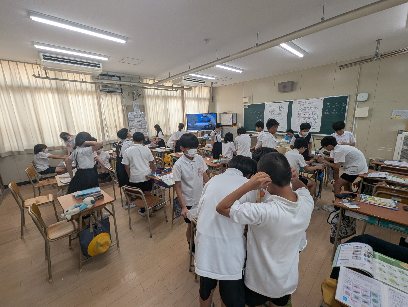 理科の授業の様子です。顕微鏡を使って、観察をしていました。植物や生物のプレパラートを観察していました。観察していた子ども達からは、驚きの声が上がっていました。本当は、自然の中で採取して見ることができるといいのですが。東成区では難しいですね。