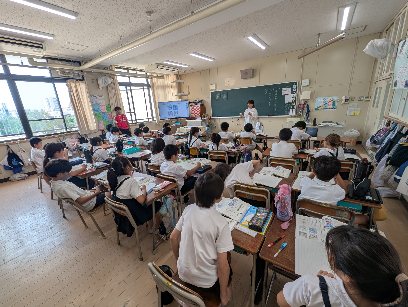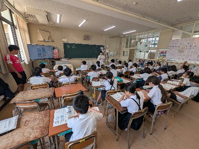 国語の授業の様子です。物語を創作する学習でした。教科書には手順が示されていて、それを参考にして物語を創作します。できあがったら読んでみたですね。