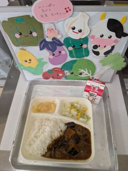 今日の献立は、夏野菜のカレーライス・サワーソテー・洋なし(カット缶)・牛乳です。