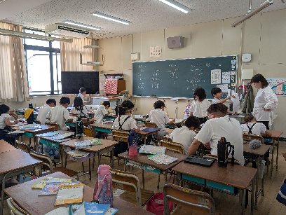 算数の授業の様子です。習熟度別少人数で学習をしていました。集中して1学期の復習をしていました。夏休み中もしっかり復習をしましょう。タブレット端末を持ち帰るので、ドリル機能も有効に活用しましょう。