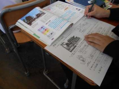 6時間目、6年1組の教室の掲示板には素敵な図工の作品が掲示されていました。隣の2組では、歴史の学習に熱心に取り組んでいました。さすが6年生です!