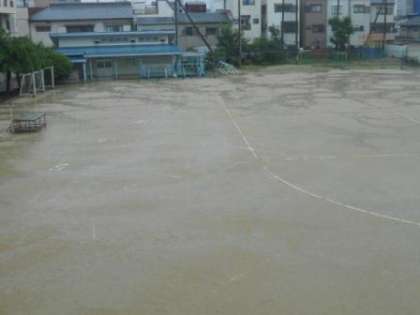 1時間目からソフトボール投げを行っていましたが、2時間目の途中から雨が降り出しました。全学年実施することができず、延期になりました。昨日の委員会活動で苦労してひいた測定ラインが雨で消えなければいいのですが…
