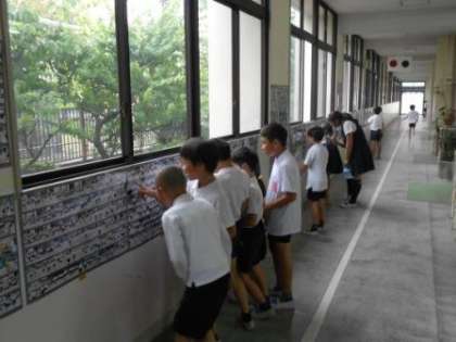 職員室前の廊下には運動会の写真が貼り出されています。写真屋さんが撮影されているので、いい表情で写っています。購入についてのお手紙も持ち帰っていると思います。25日に土曜授業もございますので、保護者の皆様にも見ていただけると思います。