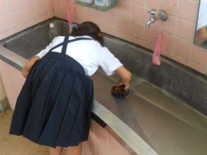 清掃時間、手洗い場を一生懸命磨いてくれている3年生がいました。とてもうれしく思います。