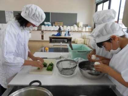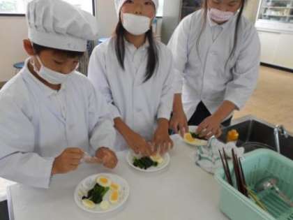 初めての調理実習でした。ゆでたまご・野菜のおひたしを上手につくることができました!
