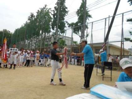 6月12日(日)東成区子ども会ソフトボール大会がありました。中道小学校チームは昨年度準優勝をしていますので、開会式でトロフィーの返還をしました。第一試合で大成小学校と対戦しました。結果は残念でしたが、一生懸命プレーしている子どもたちの姿はとてもかっこよかったです!仲間が励ましあうことは、子どもたちにとって大切な経験です。保護者の皆様、地域の皆様ありがとうございました。子ども会の活動にもどんどん参加してください!