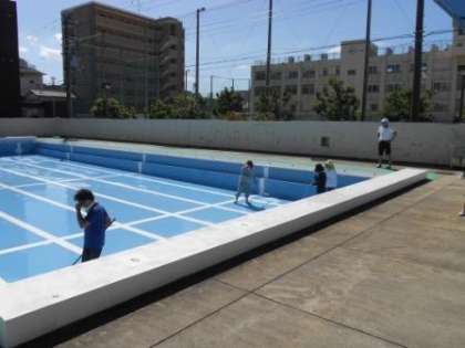 今日は、プール清掃を行いました。2学期も9月9日のプール納めまで、プールでの学習が続きます。今年のまとめができるようにがんばりましょう。また、各教室にエアコンが設置されました。夏は冷房、冬は暖房に使用します。涼しい教室で学習に取り組むことができるようになりました。