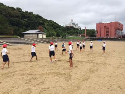 午前中は淡輪海水浴場でビーチドッジボールやバレーボールをしたり、砂浜で砂遊び、水遊びをしたりしました。お弁当食べた後、雨が降り出しました。
