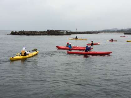 テトラポッドを越えて外海にも出ました。波の揺れ方が違います。
