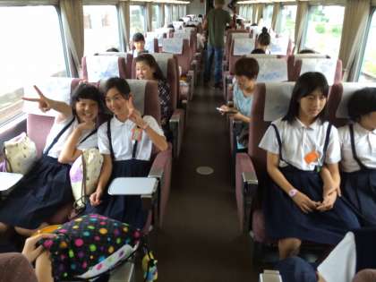 車内の様子です。子どもたちはトランプなどをして過ごしています。