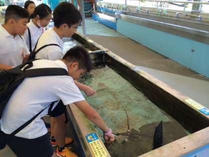 水槽で実際に生き物に触れることもできました。