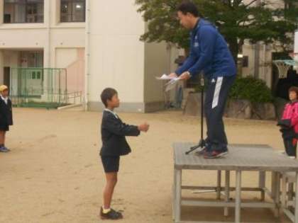 11月28日(月)の児童朝会では、赤い羽根募金の感謝状を児童会代表の児童に渡しました。たくさんの児童が協力してくれていました。保護者の皆様のご支援のおかげです。ありがとうございました。