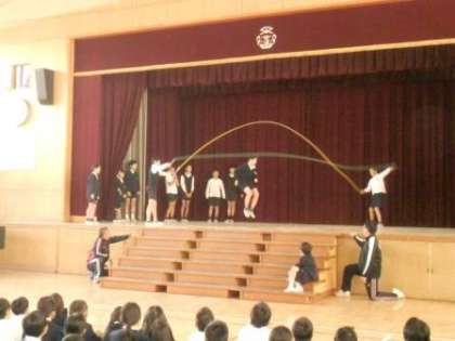 11月30日(水)のフリータイムは、運動委員会の発表を講堂で行いました。縄跳び週間が始まりますので、跳び方のデモンストレーションをしてくれました。大変盛り上がっていました。縄跳びを通した体力づくりに取り組んでいきます。