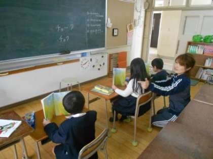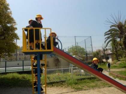 4月13日(木) くすのき学級の国語の学習のようすです。大変上手に詩を読むことができていました。今日から1年生も運動場で遊びはじめました。久しぶりの快晴のもと、滑り台やジャングルジムで元気に遊んでいました。