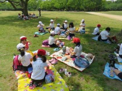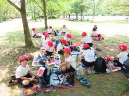 遠足の様子です。お弁当も1・2年生のグループで一緒に食べました。