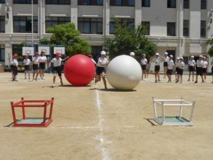 フリータイムは全校競技「大玉ころがし」の練習を行いました。みんなルールを守って行うことができていました。運動会当日は、保護者・地域の皆様にも参加していただき、盛り上げてもらえるとありがたいです。今日は強い日差しの中、子どもたちはがんばって練習していました。