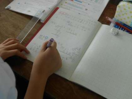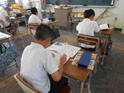 5・6年生の授業の様子です。集中して先生の話を聞き、ノートもしっかり書くことができていました。