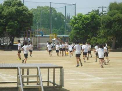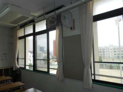暑くても中道小学校の子どもたちは元気に運動場で遊んでいます。また、教室のブラインドがカーテンにかわりました。教室が明るく感じます。