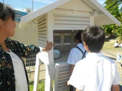 6月6日(火) 1時間目は4年生が理科で「百葉箱」の中の温度計を活用して学習しました。百葉箱の中を見るのは初めてでしたので、今日は1時間ごとに一生懸命観察していました。