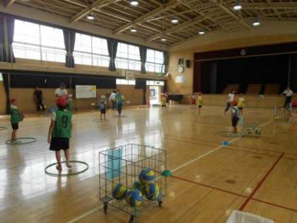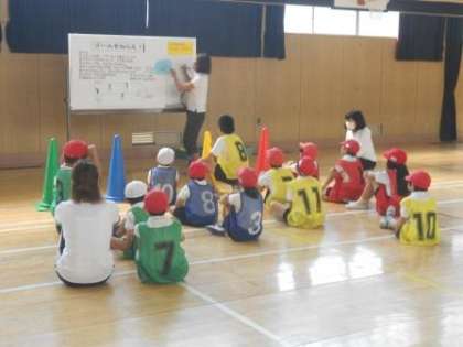 今日の1時間目はくすのきタイムでした。「ゴールをねらえ」の学習をしました。友だちの名前を呼び合って、パスができていました。準備や片づけも協力してできました。大変立派でした。