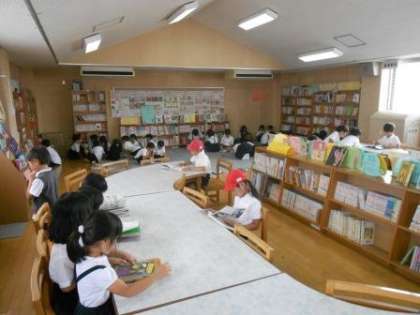 フリータイム、昼休みは図書室を開放しました。今日は久しぶりの雨で、運動場が使えませんでした。たくさんの子どもたちが本を読みに来ていました。