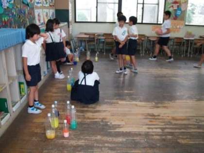 6月24日(土) 今日は土曜授業「中道夏祭り」でした。たてわり班でそれぞれの班が店を出し、ゲームを楽しみました。地域の長寿会、生涯学習「えてがみ」の皆様にもお越しいただき、子どもたちと一緒に活動していただきました。保護者の皆様にも、普段の学習の様子とはまた違った子どもたちの姿を見ていただくことができたと思います。高学年から低学年までが一緒に活動することで、中道小学校の子どもたち全体の高まりにつながります。子どもたちの様子を紹介させていただきます。